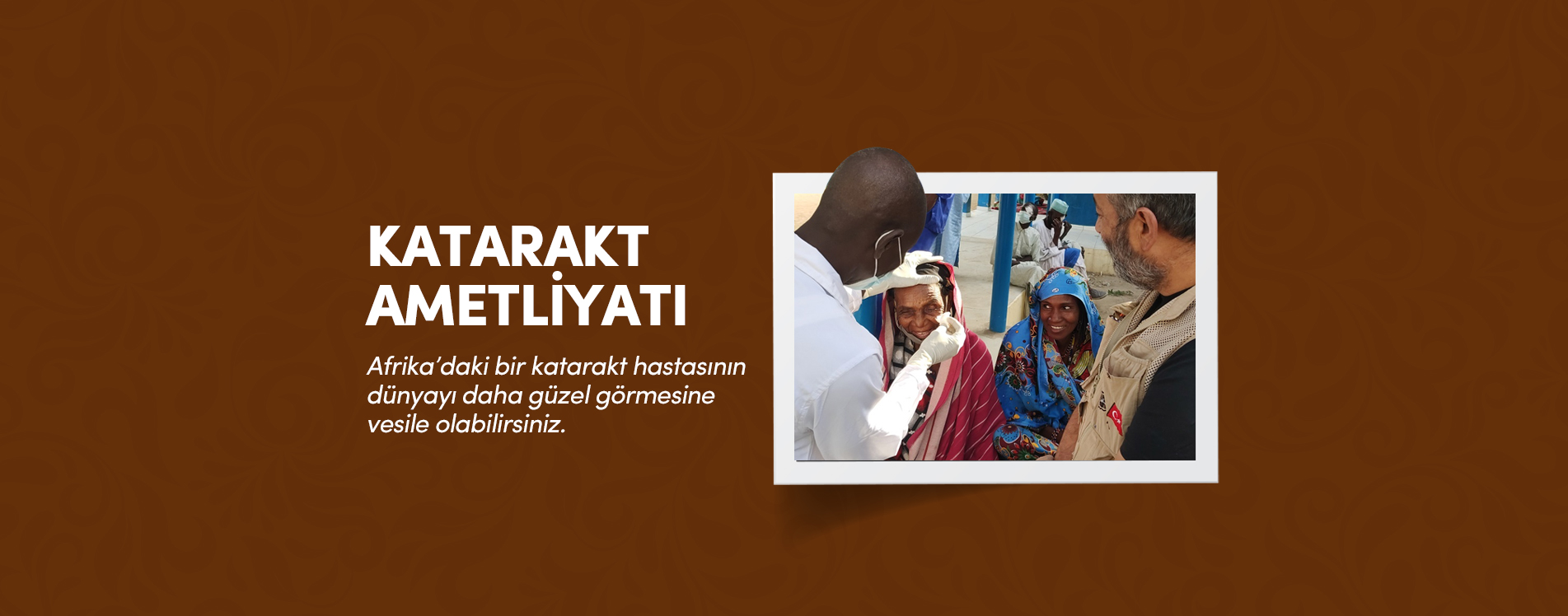 يمكن للأمراض مثل إعتام عدسة العين أن يكون لها تأثير ضار على المرضى المصابين ، ويمكن أن تسبب العمى لهم . ومع ذلك ، فهي قابلة للعلاج بسهولة.حيث تتيح جمعية الحق للاغاثة الانسانية هذه العلاجات لجميع الفقراء المرضى بسهولة ، مع أولئك الذين لن يتمكنوا من تحمل تكاليف الرعاية الصحية ، وإزالة المياه البيضاء التي هي اجراء بسيط يغيرحياتهم والتي بها يستعيدون البصر ويمكن و تزيل العمى على الفور تقريبًا