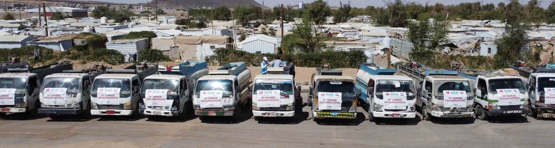 Yemen'de çadır kentlerde yaşayan kardeşlerimize tankerlerle temiz su ulaştırdık.